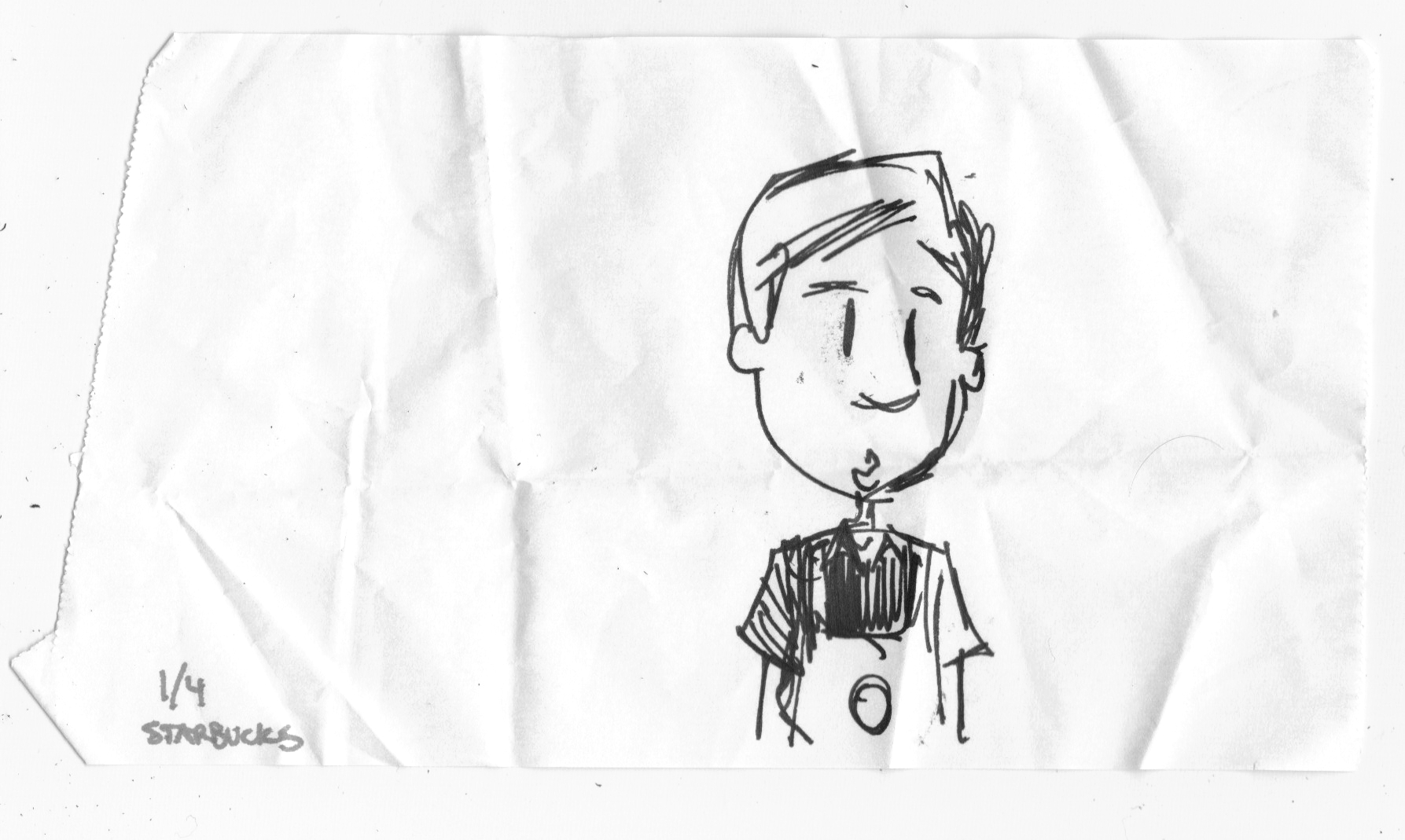 1-min sketch, Starbucks at Lacy-Lakeview, Tx, Jan 4, 2010. Pen on receipt paper.
