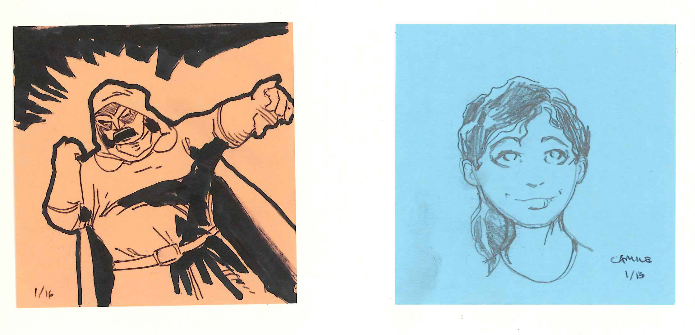 Below is my first round of sketches. The challenge was to depict five separate sequences from the Gospels (each individual page had to correspond with a different passage of Scripture) and still make them feel like installments of a single, continuous story. I’ll let you judge if I hit the mark: