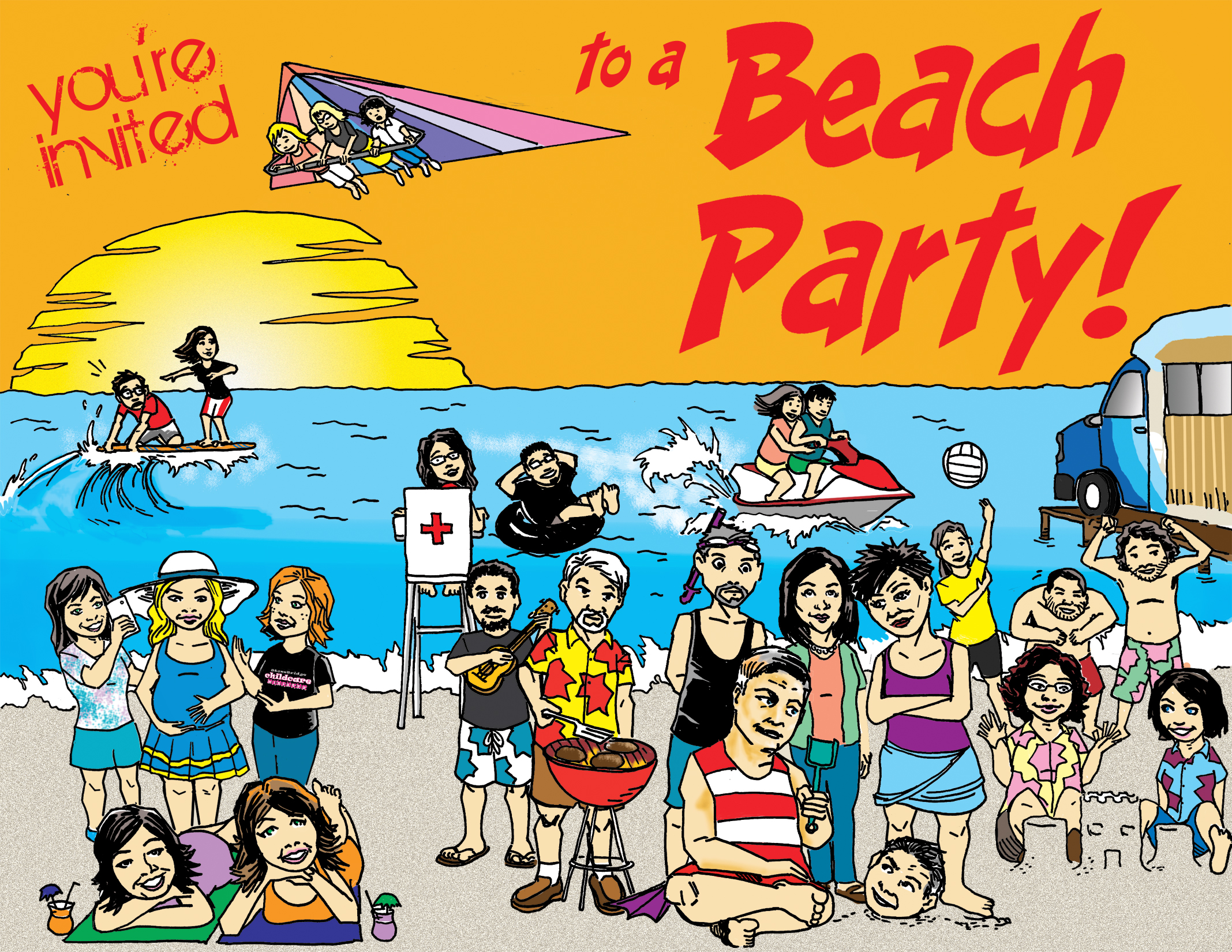 …and the final version of the Beach Party invite itself. (You can see the black-and-white draft here).